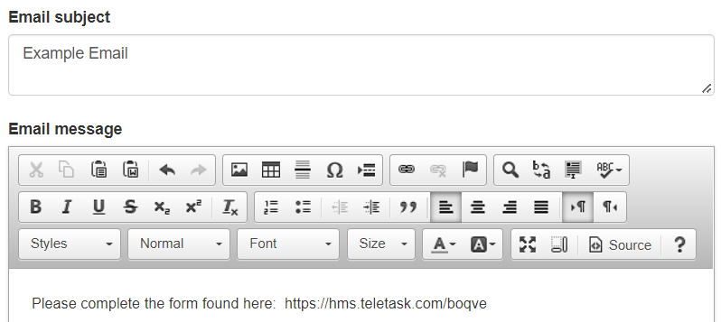 - The Merge Tag link for the media will appear in the content of the message.