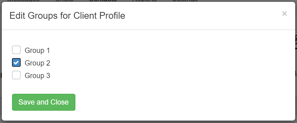 - To add or remove the client, check or un-check the Contact Groups listed.