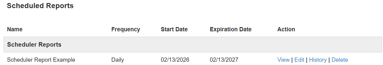 Select the Schedule to run for the previous day (each day) as Daily, previous week (once a week) as Weekly, or previous month (once a month) as Monthly. Enter the Start Date & Time, which will be the bases for the report's generation schedule.- Add the End Date for the report. If left blank, the report will automatically end one year after the start date.